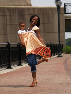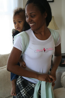 Benjamin, my experiences as a mom, and my experience as a babywearer inspired me to start Divas N Babes. Like many new moms, I struggled with being mom-me. I had to trade in my stilettos for sneakers and my skirts for sweats. I had a beautiful baby boy, the love of my life, but it was just so difficult to find clothes that were comfy and not frumpy. I decided to design a “comfy chic” apparel line for mommies, and their babes, that would allow them to be chic, yet comfy. Also, I am an avid babywearer, I wear Benjamin every day, we don’t even own a stroller! I have tried many ring slings, mei tais, pouches, and wraps that were comfortable, but didn’t have the high-fashion edge and sleek look that I desired. I wear my most valuable accessory everyday, which now, instead of designer heels and handbags, is the ring sling or mei tai that helps me to nurture and care for my baby, and I believe that mommies shouldn’t have to sacrifice fashion for function. I wanted to bring fashion to mommies in a different way; I wanted mommies to feel beautiful inside and outside while demonstrating one of the most loving acts that this world will ever witness: wearing their babies. Divas N Babes was born.